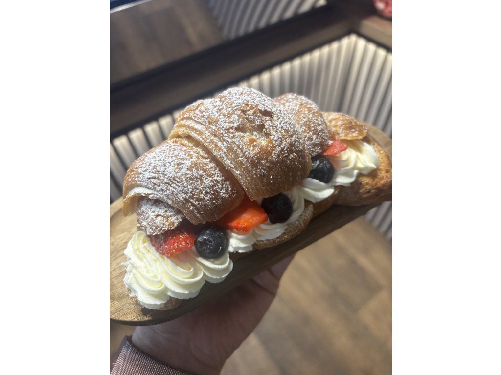 Sladký croissant plněný šlehačkou z mascarpone a čerstvým ovocem.