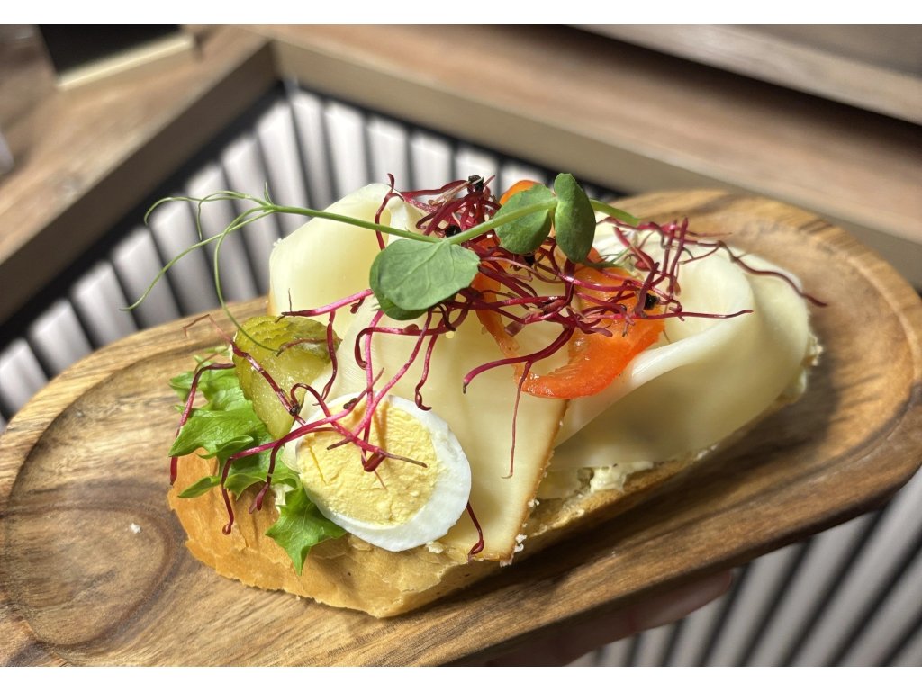 Eidam, uzený eidam, niva, vejce, lollo biondo, microgreens.